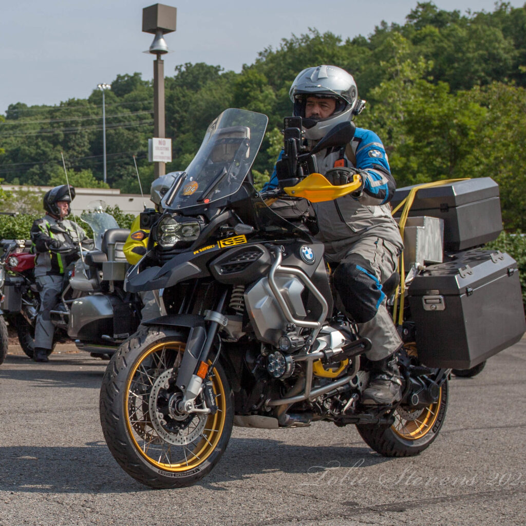 Riders leaving the parking lot to start their first leg. See these and more at tobiestevens.smugmug.com/2023-IBR-Start/.